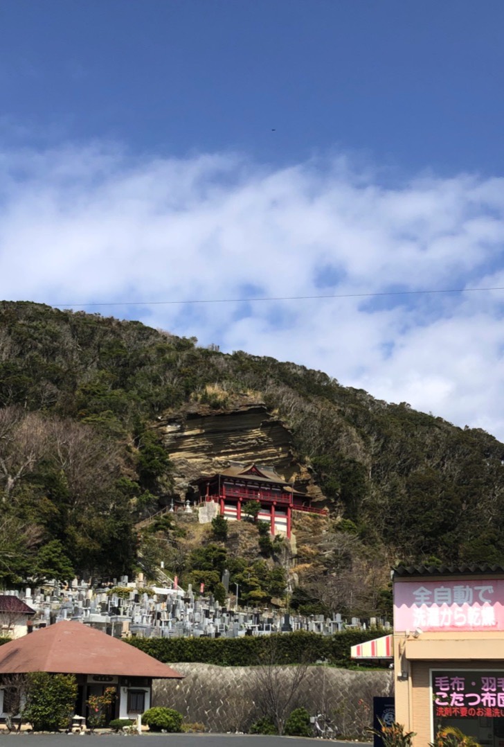 At Hamakanaya take Hwy 127 south along the coast. This first part of the trip is not the flower line; that begins after Tateyama. You soon pass Nokogiriyama on the left with its somewhat famous cable car taking people to the top. The coastline is rocky with some nice views across the bay with Mt. Fuji in the distance.