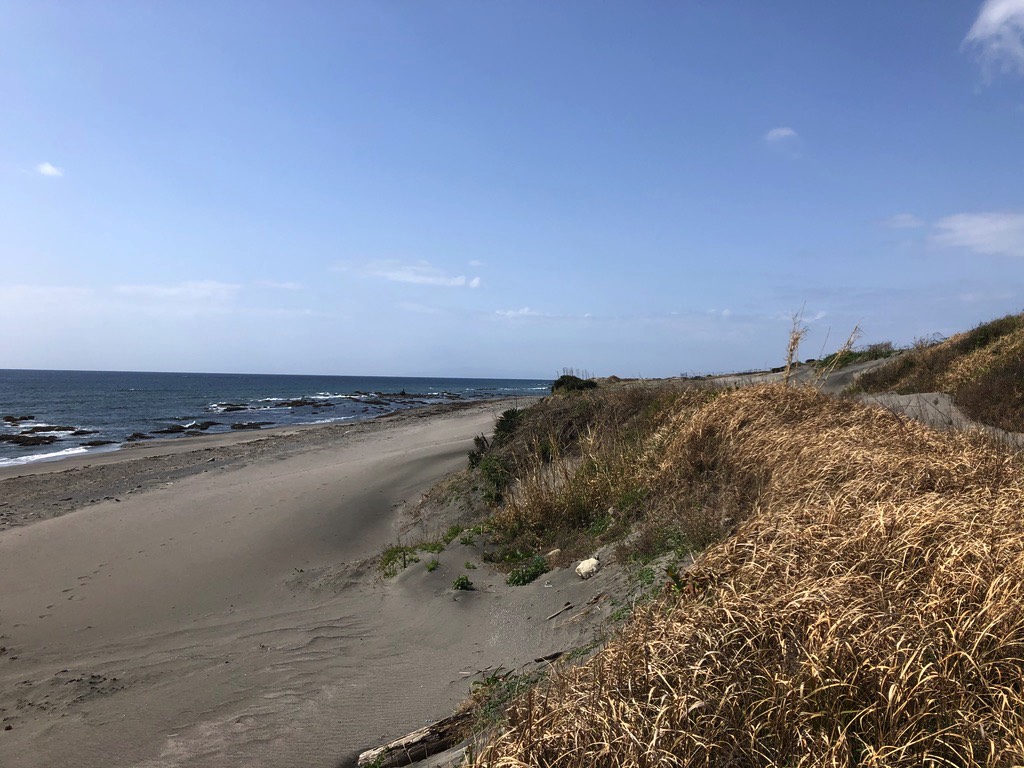 After coming around the tip the atmosphere changes becoming more of a relaxing seaside tourist location. There are some resorts, golf courses, and small inns spaced out quite a bit. It’s not like the busy Shonan Coast; it’s more of a laid-back feel. One thing I’ve noticed about Chiba is that the roads are close to the ocean. They are smooth and winding and often run close to the rugged stretches of craggy rocks as well as sandy stretches with big dunes. This makes for great cycling.