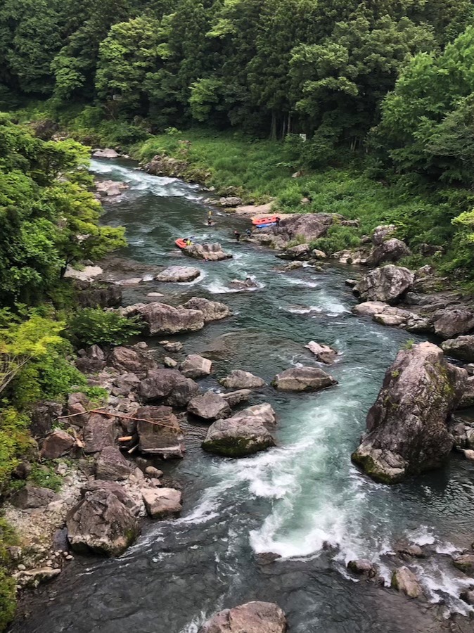 And so, I decided to ride up the Tama River from my home in Kawasaki and give it a try. I am very familiar with the ride up to Ome as the Tamagawa has become a highway for me taking me to various routes in and out of the city. There are paved bike paths on either side along the river all the way up to Hamura, about 5 km before Ome. From there I rode Hwy 411 along the north side of the river up to Mitake Station and then turned left and crossed the beautiful Mitake Bridge. There were some rubber rafts traveling through the whitewater down below which brought back memories of rafting the Gallatin River in Montana.