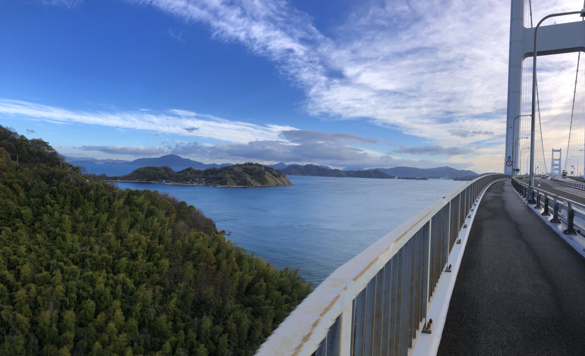 I took 2 days to complete the trip, spending the night in Imabari and returning the next day. This turned out well as the first day was cloudy and cool and the following day was sunny and pleasant, providing a whole different atmosphere. The deep blue sky and glistening sea gave me some pleasant views. Please check out the photo gallery below.
