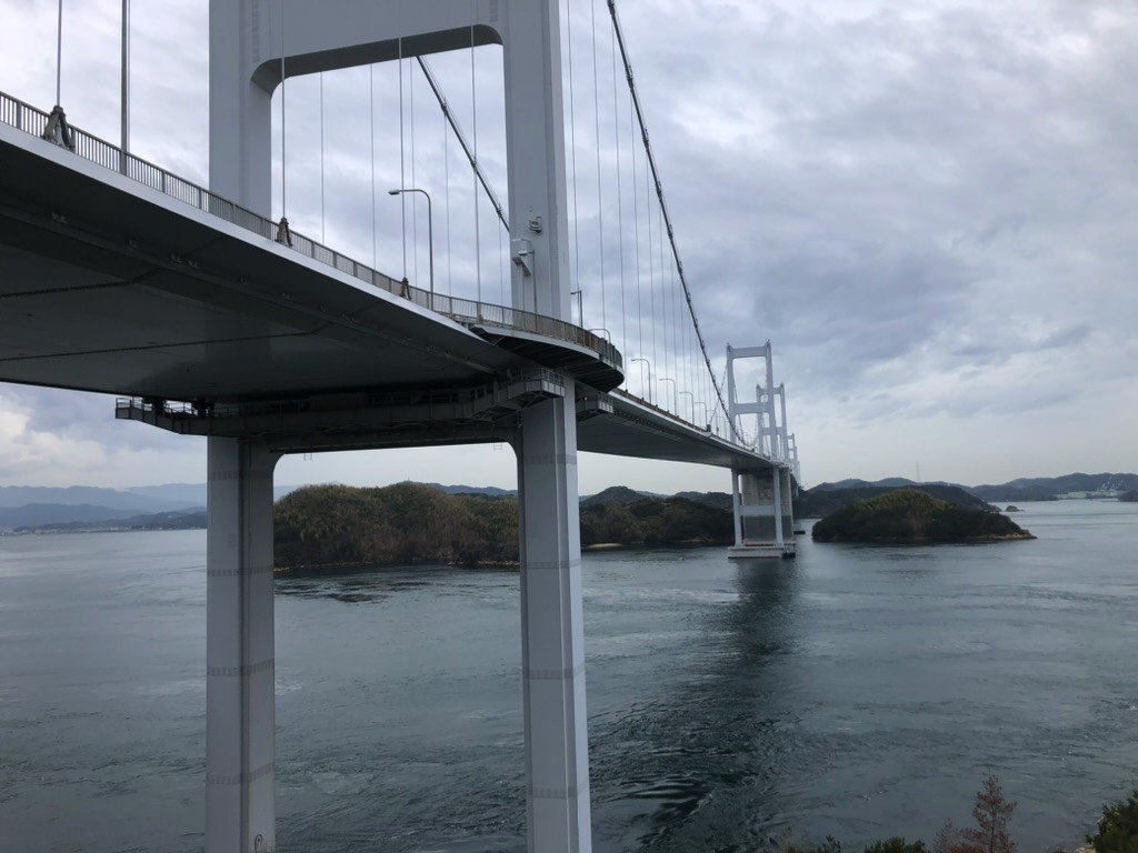 I started off at about 8 am, taking the short ferry ride over to Mukaishima, just a stone’s throw away. The rest of the route crosses over bridges. The bridges each have their own distinctive design and have their own personality. The last one, the Kurushima Kaikyo Bridge, is a beast at over 4 km long.